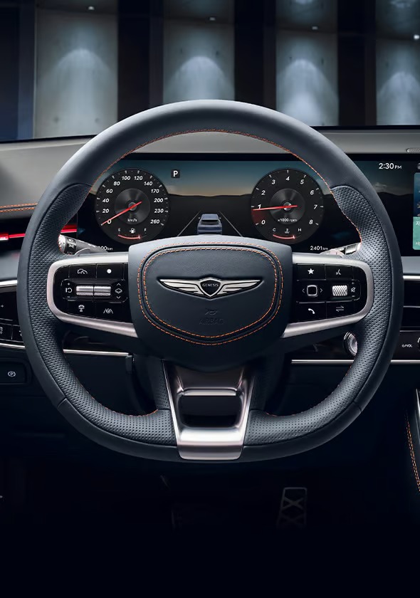 스티어링 휠은 그립감과 고급스러움을 동시에 제공합니다.