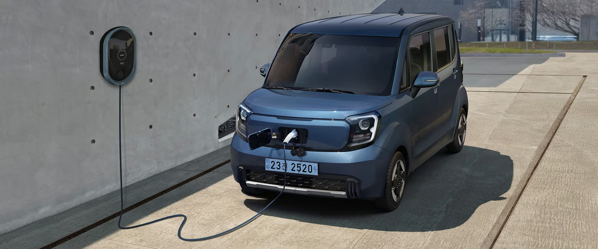 측면은 레이 특유의 박스카 실루엣을 유지하면서 전기차 특유의 블루 악센트가 더해졌습니다.