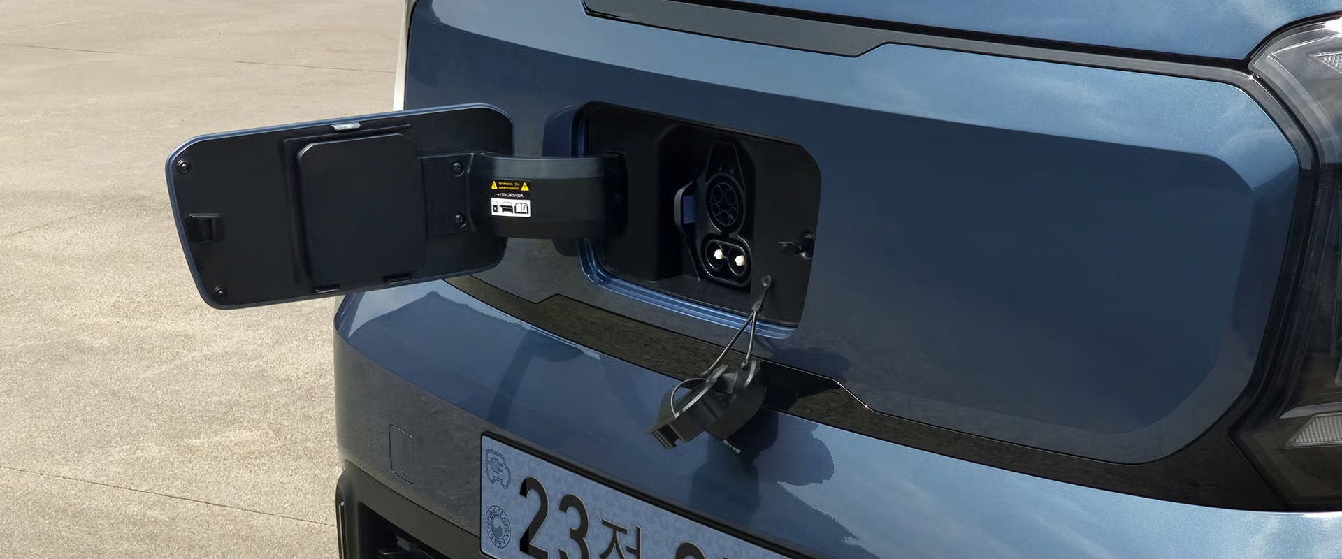 후면부는 간결한 테일램프와 전기차 전용 엠블럼이 적용되어 차별화를 이루었습니다.