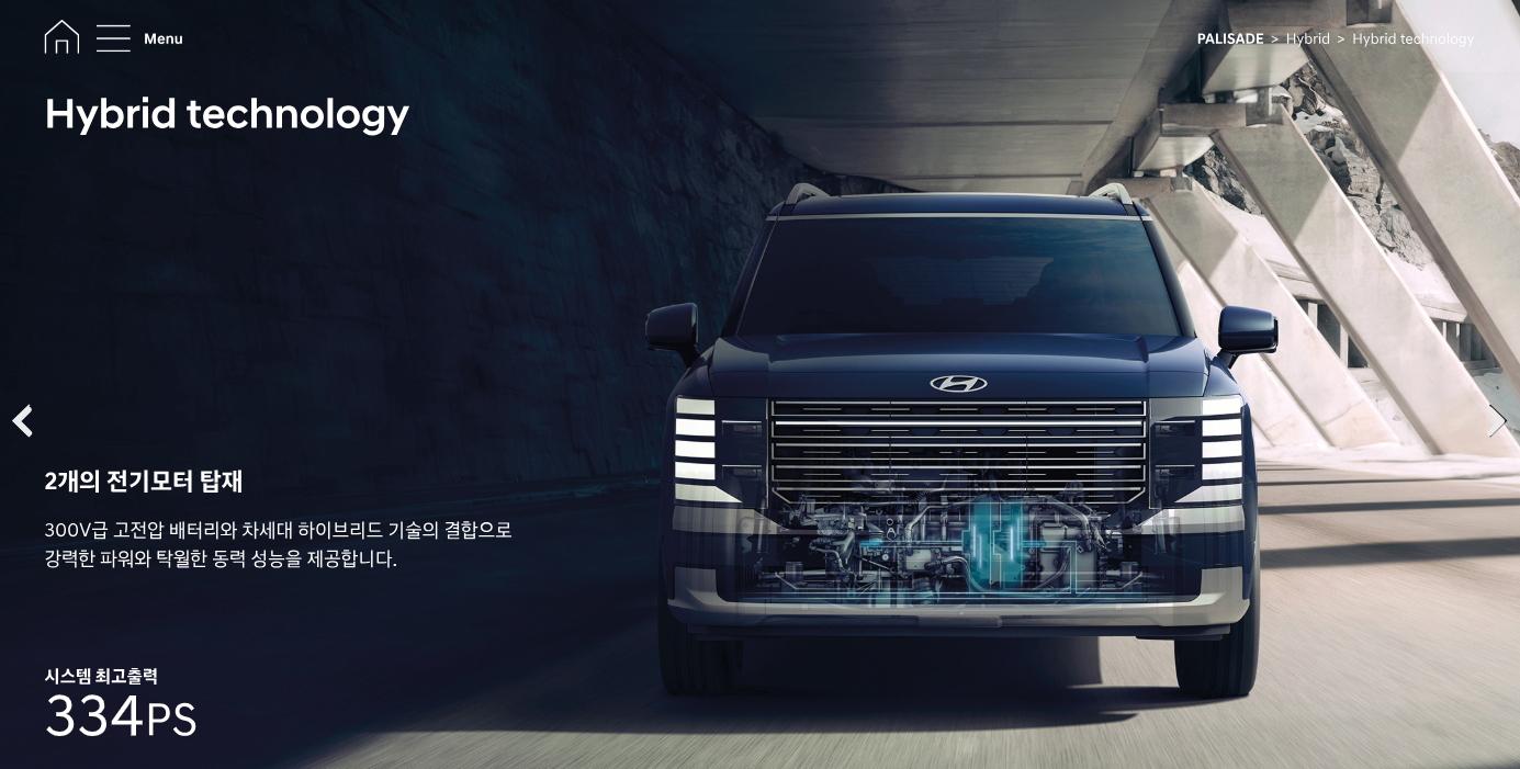 현대차의 인기 대형 SUV 팰리세이드는 하이브리드 파워트레인을 탑재하여 정숙성과 연비를 동시에 잡은 것이 특징입니다.